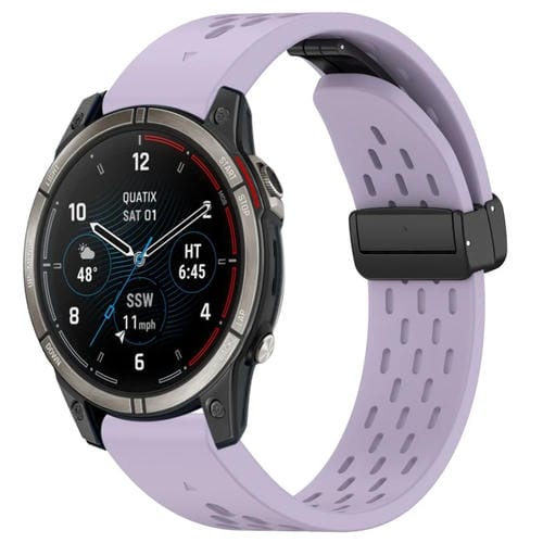 Correa de Silicona para Garmin Quatix 7 Pro con Hebilla Plegable Magnética y Orificios de 22mm (Púrpura)
