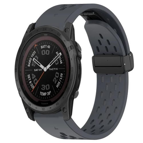 Correa de Silicona para Garmin Tactix 7 Pro con Orificio y Hebilla Plegable 26mm (Gris Oscuro)