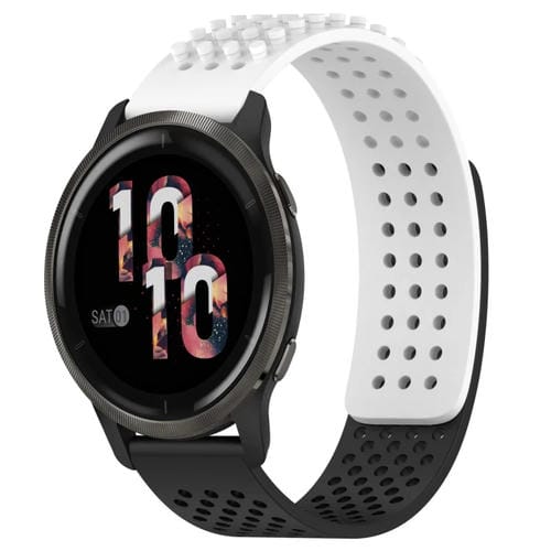 Correa de Reloj para Garmin Venu 2 de Silicona con Puntos 3D Transpirables y Orificios 22mm (Blanco + Negro)