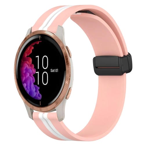 Correa de Silicona para Garmin Venu con Cierre Magnético Plegable de 20mm (Rosa + Blanco)