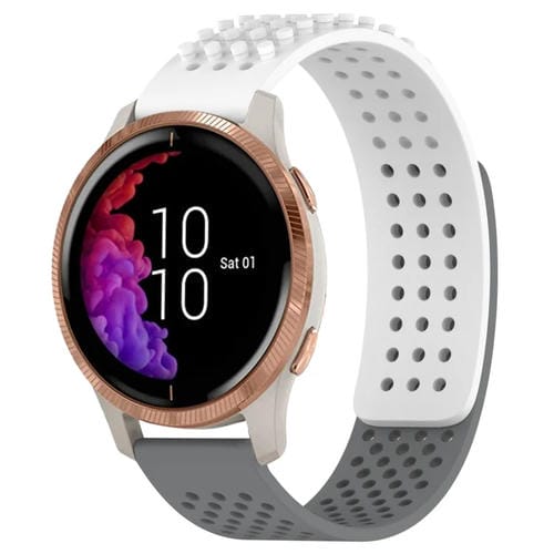 Correa de Reloj para Garmin Venu Silicona con Puntos 3D Transpirables Orificios 20mm (Blanco + Gris)