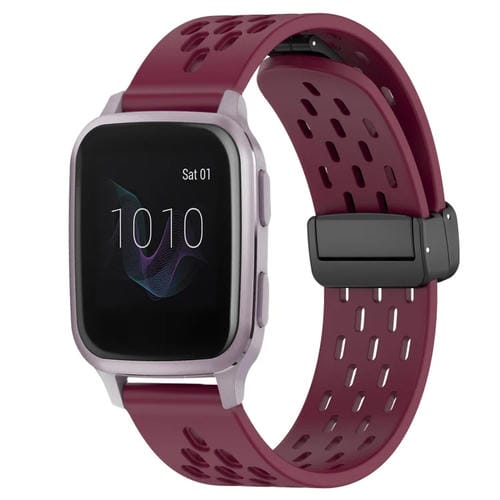 Correa de Silicona para Garmin Venu Sq con Cierre Magnético Plegable 20mm (Rojo Vino)