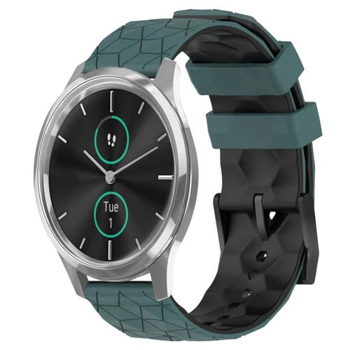 Banda de Reloj Para Garminmove Luxe 20mm Silicona Dos Colores Patrón Fútbol (Verde Oliva + Negro)
