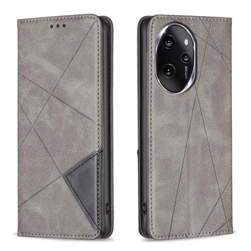 Funda de Cuero Magnético para Honor 100 Pro con Textura Rombo (Gris)