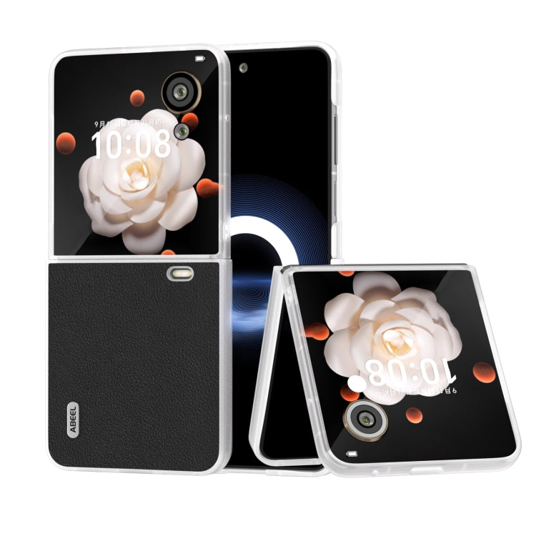 Estuche para Honor Magic V Flip Abeel con Marco Translúcido Esmerilado de Cuero Genuino Wave (Negro)