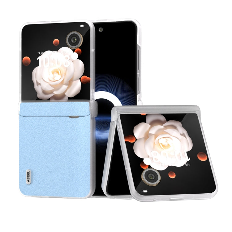 Estuche para Honor Magic V Flip Abeel con Marco Translúcido Esmerilado y Cuero Genuino (Azul)