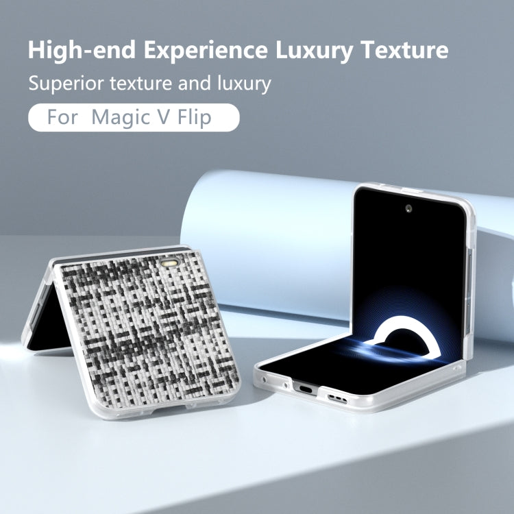 Estuche para Honor Magic V Flip de PU con Textura de Celosía y Marco Translúcido Esmerilado (Negro)