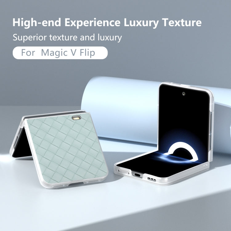 Estuche para Honor Magic V Flip de PU con Textura Tejida y Marco Translúcido Esmerilado (Verde Claro)