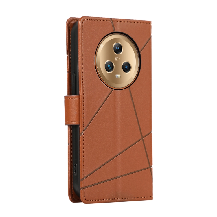Funda para Honor Magic5 PU con Línea en Relieve y Textura de Cuero Genuino (Marrón)