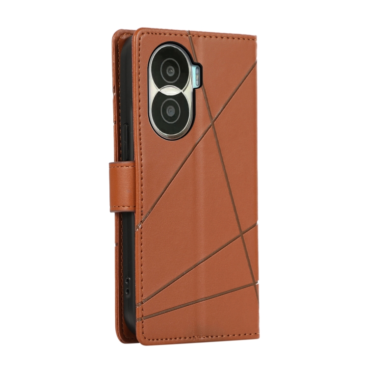 Funda para Honor X40I PU con Línea en Relieve y Textura de Cuero Genuino (Marrón)