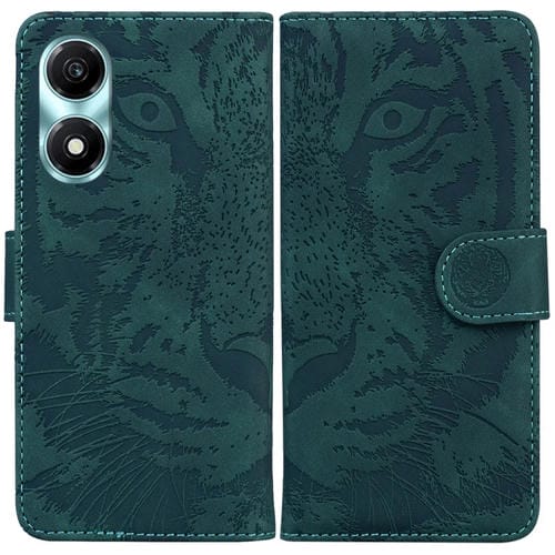 Funda para Honor X5 Plus Play 40C de Cuero con Tapa y Patrón en Relieve de Tigre (Verde)