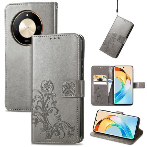 Funda para Honor X50 de Cuero en Relieve con Cierre de Cuatro Hojas (Gris)