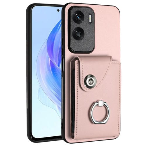 Funda para Honor X50I y 90 Lite de PU con Soporte para Anillo y Bolsa para Tarjeta (Rosa)