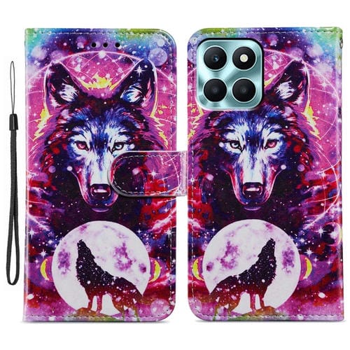 Funda para Honor X6A de Cuero con Tapa Horizontal y Patrón Pintado (Tótem de Lobo)