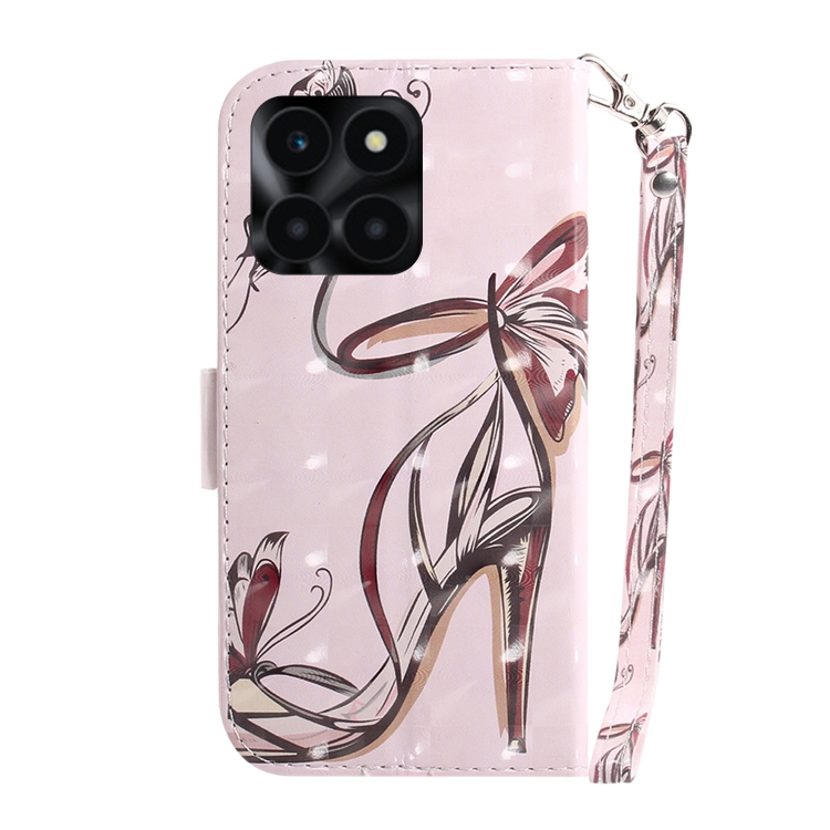 Funda para Honor X6A de Cuero con Tapa Horizontal y Diseño 3D Mariposa de Tacón Alto (Color)