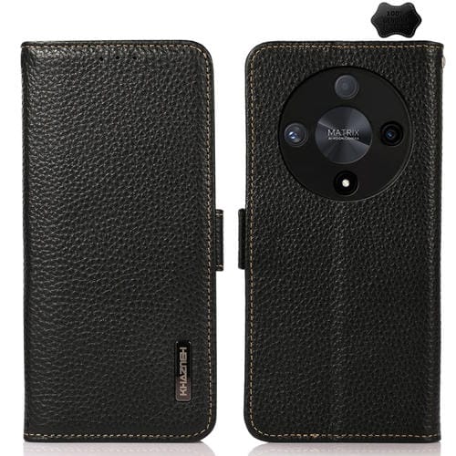 Funda para Honor X9B Khazneh de Cuero Genuino Litchi con Rfid y Cierre Magnético (Negro)