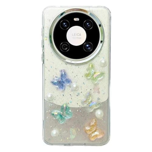 Funda para Huawei Mate 40 TPU con Mariposa de Cristal Colorido Tridimensional (Mariposa Perla)