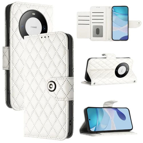 Funda para Huawei Mate 60 Pro / 60 Pro+ con Tapa de Cuero Textura Rómbica y Cordón (Blanco)