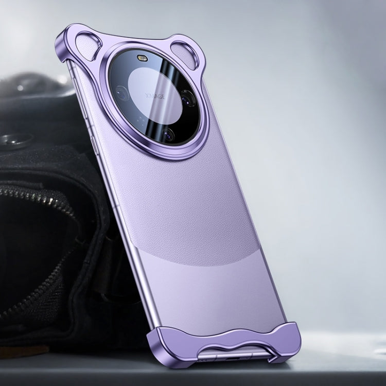 Estuche para Huawei Mate 60 Pro con Almohadilla de Esquina de Metal sin Marco y Película para Lentes (Púrpura)