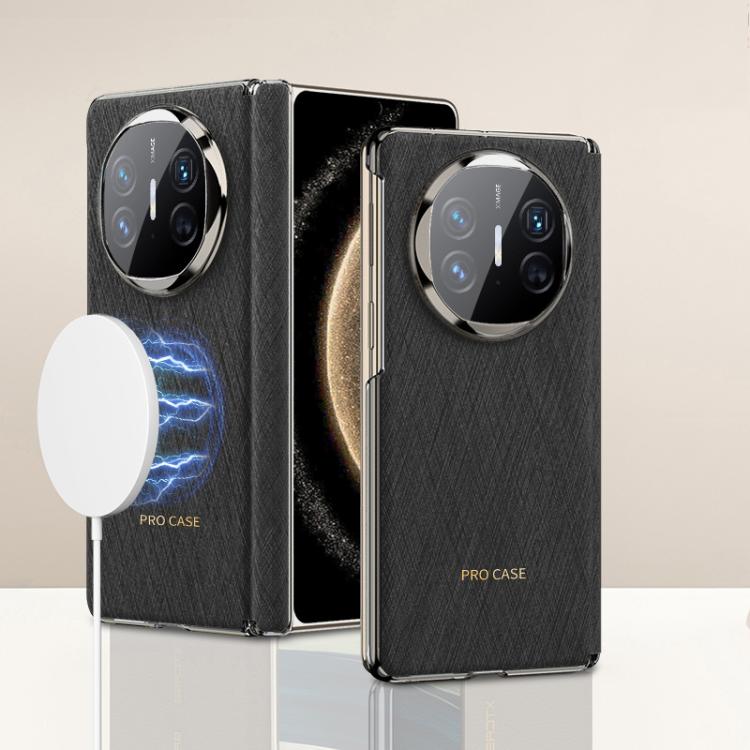 Funda para Huawei Mate X6 Gkk de Cuero con Bisagra Ultrafina Magsafe (Brocado Plateado Negro)