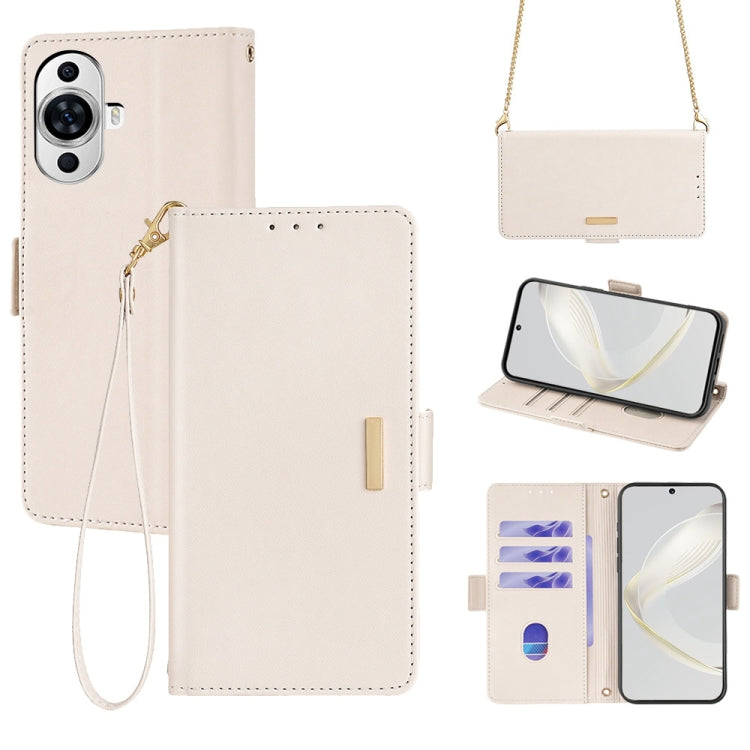 Funda de Cuero para Huawei Nova 11 4G con Cadena Cruzada (Blanco)