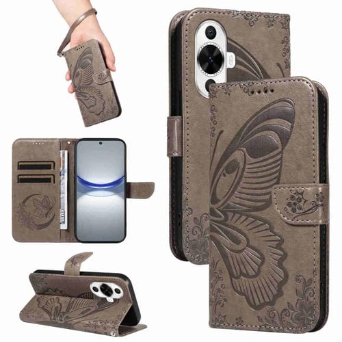 - 1x Funda de Cuero para Huawei Nova 11 5G y 12S 4G con Relieve Mariposa y Cola de Golondrina (Gris)