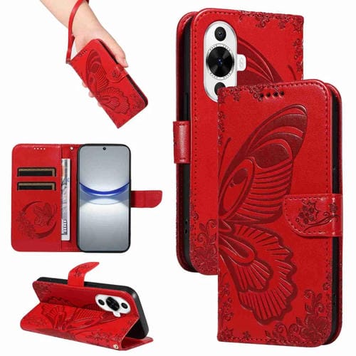 • 1x Funda para Huawei Nova 11 5G y 12S 4G de Cuero con Relieve Mariposa y Cola de Golondrina (Rojo)