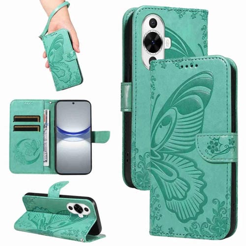 Funda para Huawei Nova 11 5G y 12S 4G de Cuero con Relieve Mariposa y Cola de Golondrina (Verde)