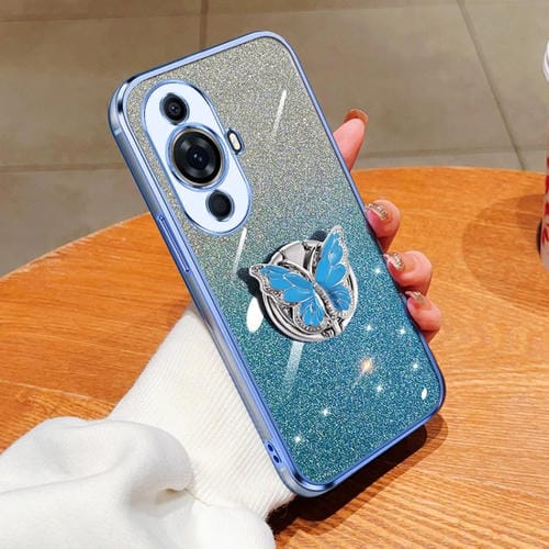 - 1x Funda para Huawei Nova 11 Pro de TPU con Soporte de mariposa y brillo degradado (Azul Sierra)