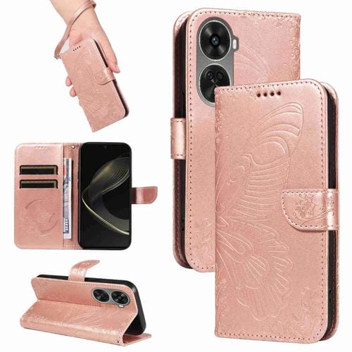 Funda para Huawei Nova 11 Se 4G de Cuero con Relieve Mariposa y Cola de Golondrina (Oro Rosa)