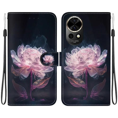 Funda de Cuero para Huawei Nova 12 con Dibujo Coloreado y Textura de Cristal (Peonía Púrpura)