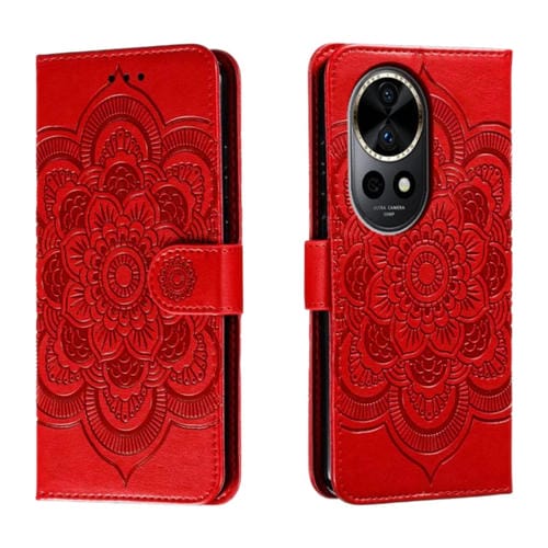 Funda de Cuero Huawei Nova 12 Pro con Patrón en Relieve Sun Mandala (Rojo)