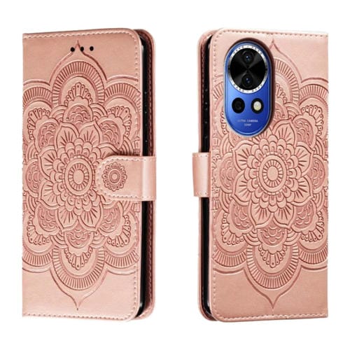 Funda de Cuero para Huawei Nova 12 con Patrón en Relieve Sun Mandala (Oro Rosa)