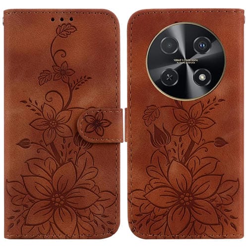 Funda de Cuero En Relieve para Huawei Nova 12I 4G Global Lily (Marrón)