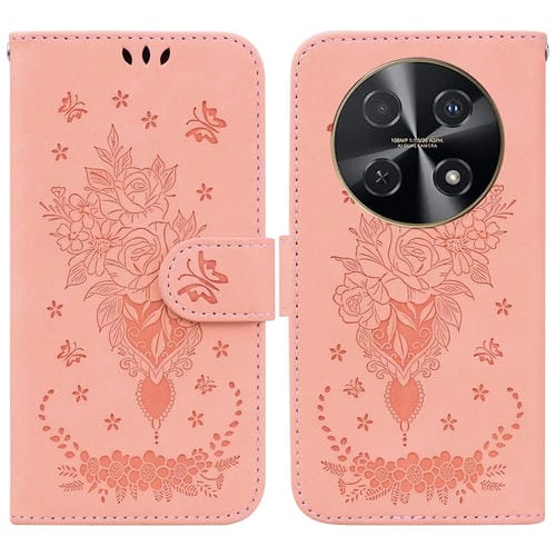 Funda de Cuero para Huawei Nova 12I con Relieve de Mariposa y Rosa (Rosa)