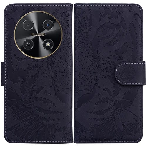 - 1x Funda de Cuero para Huawei Nova 12I con Tapa y Patrón de Relieve de Tigre (Negro)
