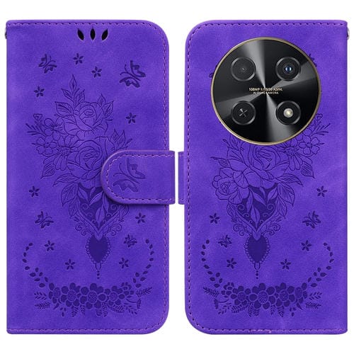Funda para Huawei Nova 12I de Cuero con Relieve de Mariposa y Rosa (Púrpura)