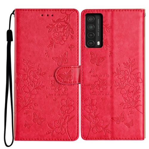 Funda para Huawei P Smart 2021 y Y7A de Cuero con Relieve Flor y Mariposa (Rojo)