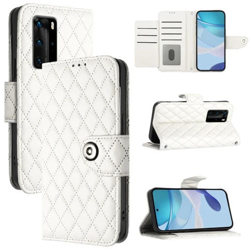- 1x Funda de Cuero para Huawei P40 Pro con Tapa Textura Rómbica y Cordón (Blanco)