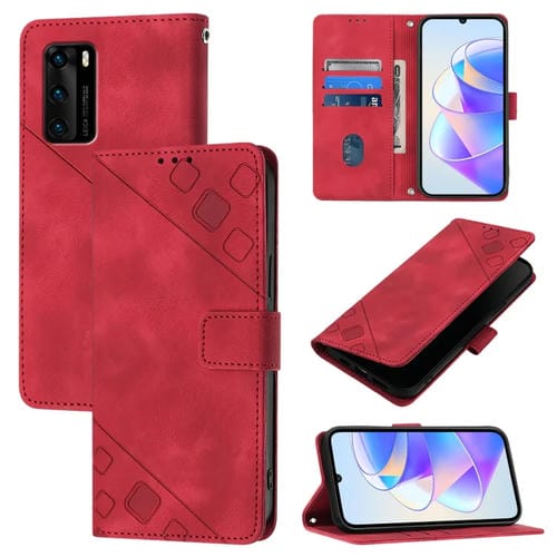 Funda de Cuero para Huawei P40 Skin Feel con Relieve (Rojo)