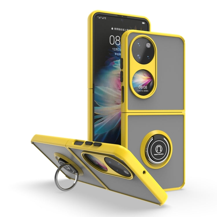 Funda para Huawei P50 Q Shadow I Ring Kickstand PC y TPU Hybrid (Amarillo)