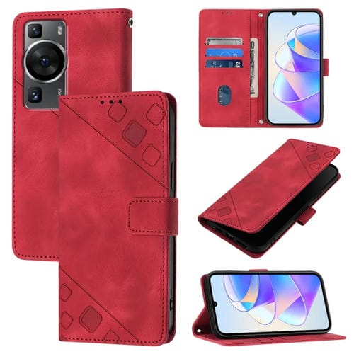 - 1x Funda de Cuero para Huawei P60 / P60 Pro Skin Feel Teléfono En Relieve (Rojo)