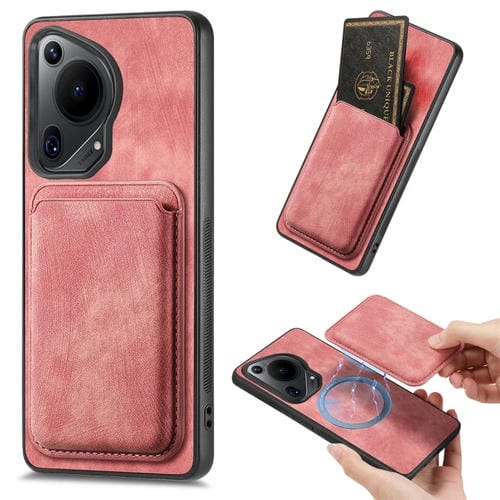 - 1x Funda para Huawei Pura 70 Magnética con Bolsa de Tarjeta de Cuero Retro (Rosa)