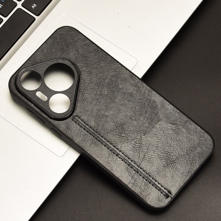 Funda para Huawei Pura 70 con Bolsa para Tarjetas y Patrón de Vaca (Negro)