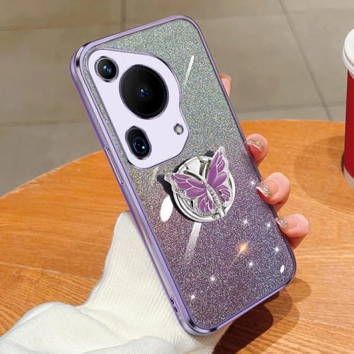 Funda TPU para Huawei Pura 70 con Soporte de Mariposa y Brillo Degradado (Púrpura)