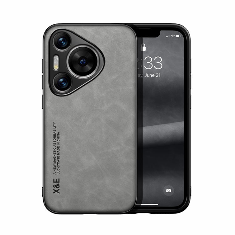 Funda para Huawei Pura 70 Pro y Pura 70 Pro+ con Parte Trasera de Cuero Magnético (Gris Claro)