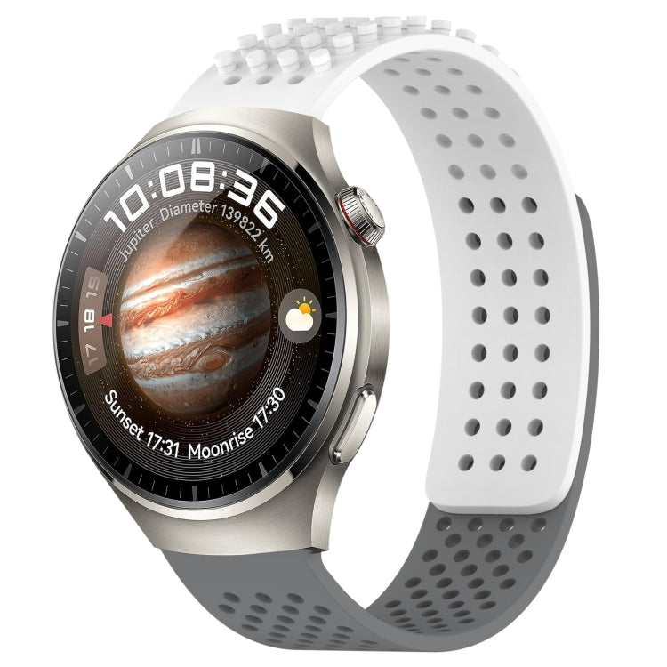 Correa de Silicona para Huawei Watch 4 Pro 22mm con Puntos 3D Transpirables (Blanco + Gris)