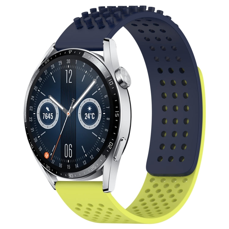 Correa de Silicona para Huawei Watch GT3 46mm 22mm con Orificios y Puntos 3D Transpirables (Azul Medianoche + Verde Lima)