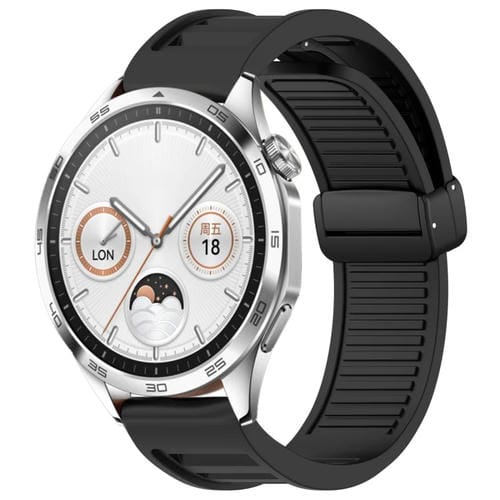 Correa de Silicona para Huawei Watch GT4 46mm 22mm con Hebilla Magnética Plegable (Negro)