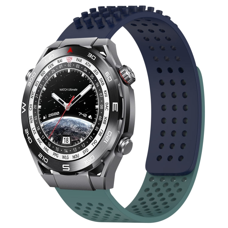 Para Huawei Watch Ultimate Correa de Reloj de Silicona con Puntos 3D Transpirables con Orificios de 22mm (Azul Medianoche + Verde Oliva)